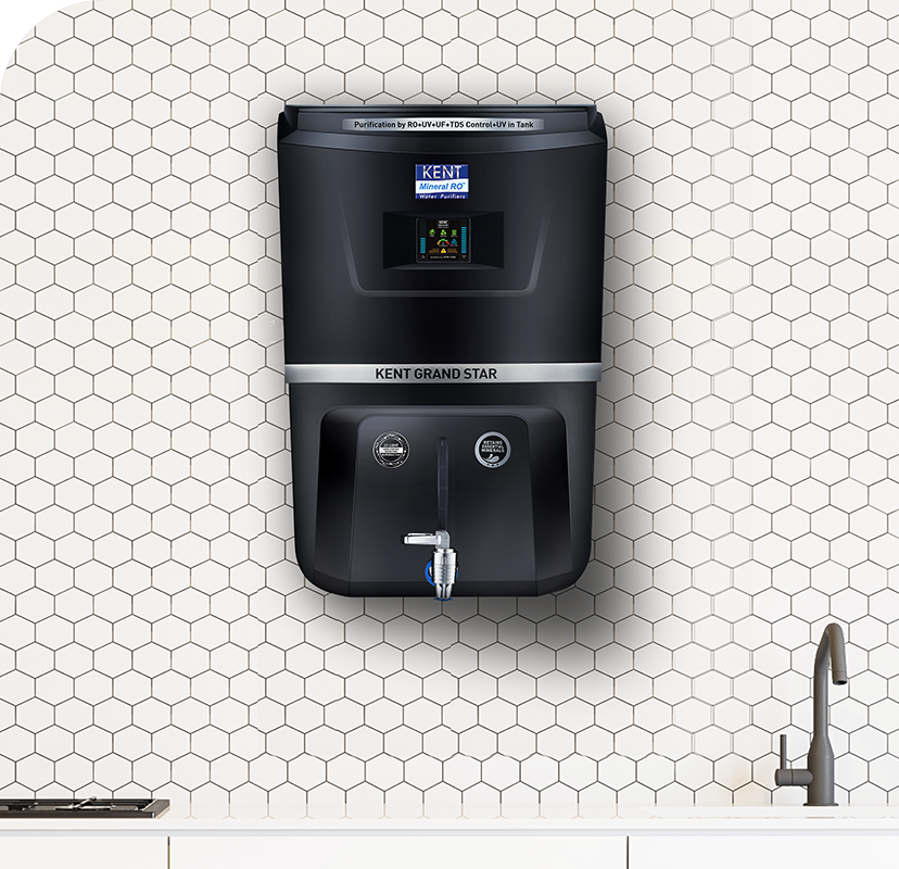 With KENT Grand Star, an advanced ROTM water purifier with multiple purification processes including RO+UV+UF+TDS Control+UV In-tank, and Zero Water Wastage Technology, you can now drink 100% pure and mineral-rich purified water. This purifier has a unique Digital Display of Purity feature that enables real-time tracking of the quality of the purified water, filters life, RO flow rate etc. Additionally, the Mineral RO™ technology helps in retaining important natural elements in the purified water. Additionally, it is designed with bold black shade that’s sure to add a new dimension to your kitchen décor. KENT Grand Star works best for purifying brackish, tap, and municipal corporation water in Indian residences and workplaces.